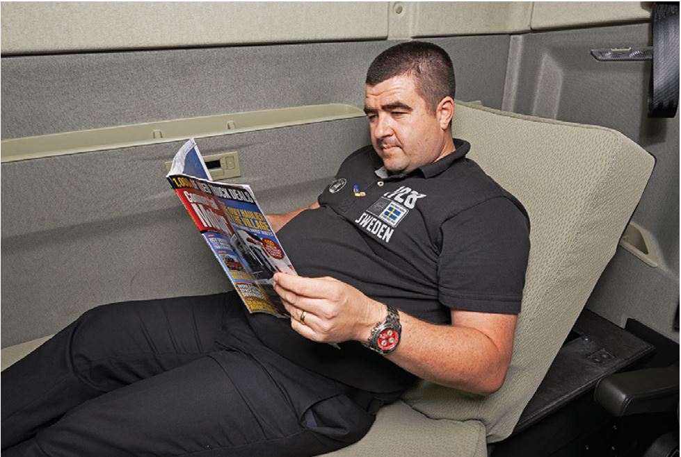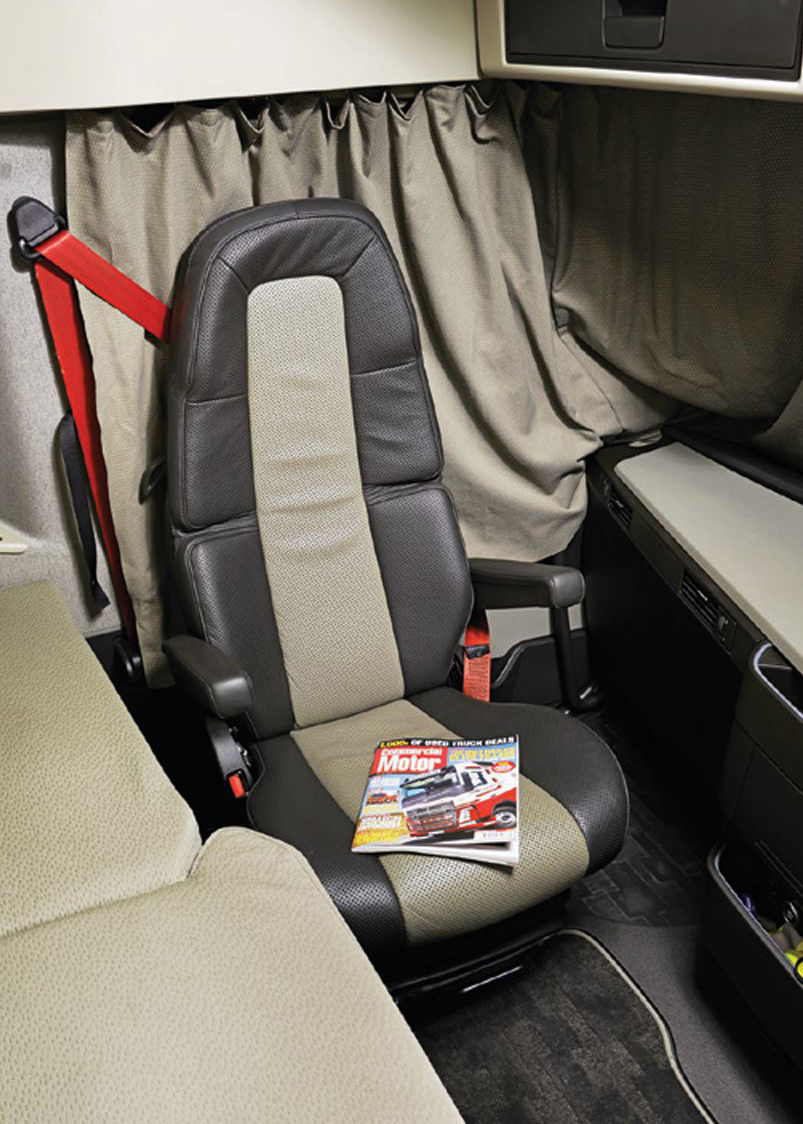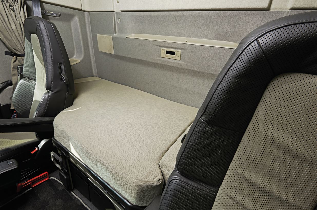 Given that 99% of the time in the cab is spent either sitting at the wheel or relaxing, the facilities for these are vitally important. Both two-tone leather trimmed front perches feature whole seat reclining, while the passenger side has swivel and cushion fold-up functions as well. The driving seat comes with ventilation that provides cooling or warming air at the same temperature as the digital climate control.