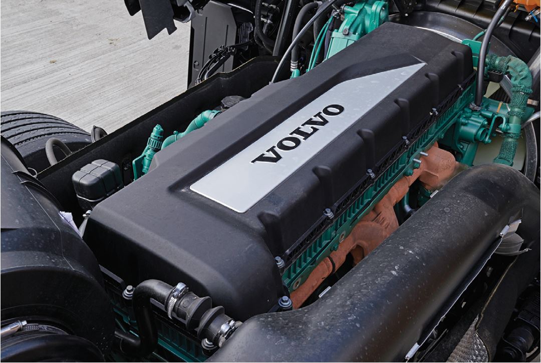 High-pressure electronic unit injectors provide the first stage of the Euro-6 combustion process, which continues through an uncooled exhaust gas recirculation system. The chemical after-treatment process consists of four devices, including the diesel particulate filter and the SCR unit where the AdBlue is injected, in this case at the rate of 7.5% of diesel consumption.