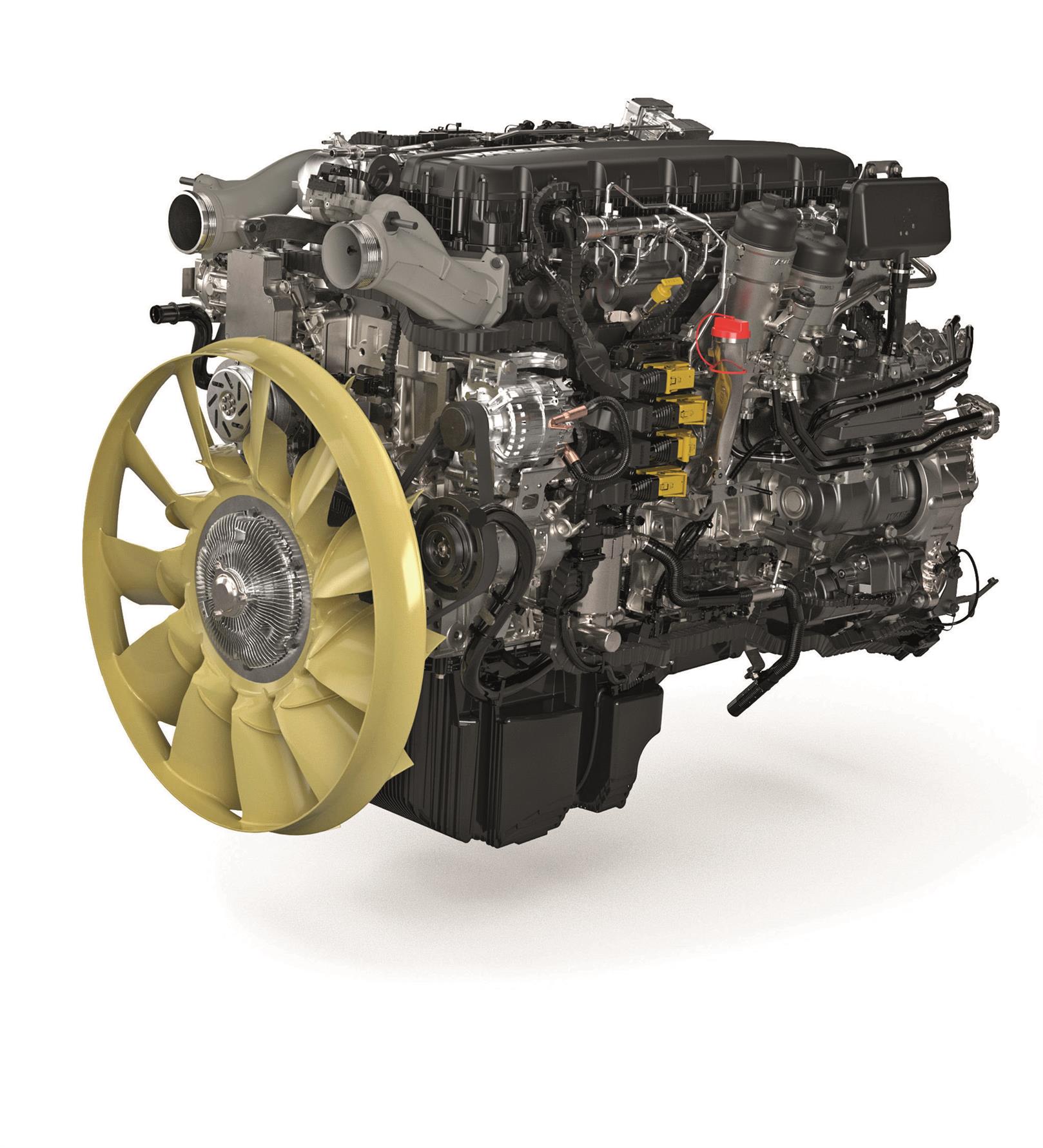 For example, the XF, XG and XG+ models now get the option of full side panels – improving aerodynamics and increasing efficiency. This builds upon the legacy of the Next Generation vehicles, which laid claim to a 19% aerodynamic improvement resulting in a 6.3% fuel consumption reduction compared with the outgoing XF range. That figure is boosted further with these new changes, pushing the figure as high as 13% thanks to revisions to the MX-11 and MX-13 engines, with revised engine timing, a dual-drive coolant pump for better low and high cooling performance, new air-compressors, a lower friction crankshaft, and improvements to the turbos, as well as exhaust gas recirculation. Revised valve timings, known as the Miller Timing Process, mean that the intake valve is left open for slightly longer on the compression stroke, allowing more air into the mix. Changing this combustion cycle yields an improvement in fuel efficiency. The cooling pump changes have resulted in both mechanically and electrically driven pumps, with an electric system for low cooling performance and a belt drive pump for high cooling. The system is therefore now more efficient, using either a mechanical or electrical system depending on demand.