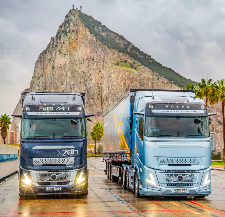 As we approach the Bay of Gibraltar from the Algeciras side, our destination is suddenly presented to us. The Rock stands like an actor illuminated in the limelight as menacing storm clouds engulf the rest of the bay. I park the FH16 Aero 780 XXL in front of the Gateway to the Mediterranean as afternoon sunshine peaks through the clouds, praying the weather holds and that the FH Aero with its I-Save engine isn’t actually as far behind as I may otherwise want it to be.