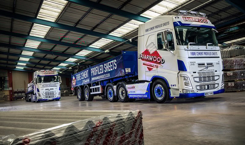 They are the first Volvo trucks Briarwood Products has put into service for 25 years and will be used exclusively on own-account operation for the company, which specialises in the supply of fibre cement profiled sheets and accessories.