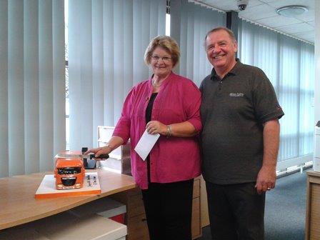 . Brian and Pat Currie celebrating the company's anniversary with a Daf truck-shaped cake.