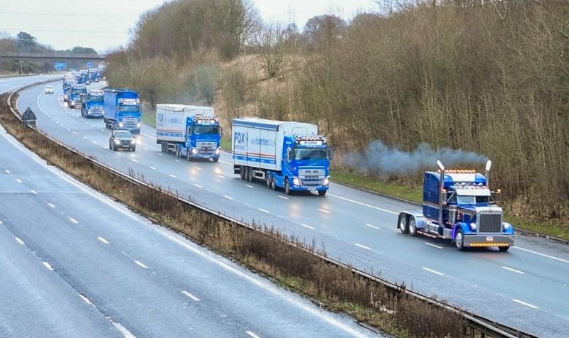 The convoy of 66 vehicles – led by the company’s flagship Peterbilt and accompanied by everything from concrete mixers to road sweepers – departed early on 23 December to commemorate late company boss Harold Fox.