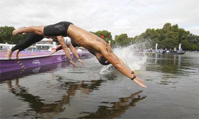 The triathlon takes place in the capital’s Hyde Park, and athletes will complete a cycle circuit that takes in Buckingham Palace and the Wellington Arch.