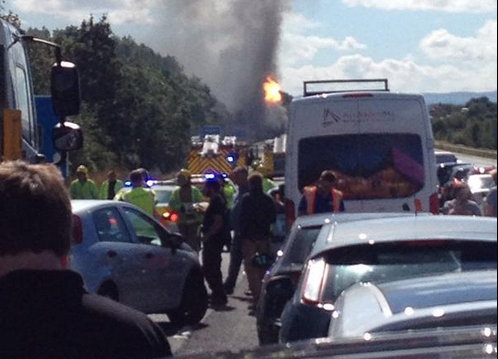 M56 fire gas tanker has gone up, don't think I'll go any closer pic.twitter.com/2UD4Cz1oid