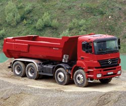 Mercedes' Euro 4 Axor eight-wheeler is substantially lighter than its Euro 3 counterpart, with a chassis-cab weight of just 9,150kg, thanks to an axle and transmission change.