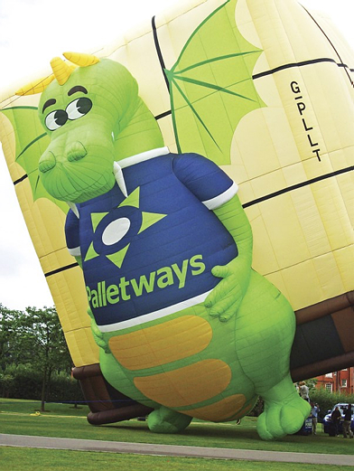 Palletways yesterday (8 July) unveiled its new marketing image, Slick the dragon. He was introduced to the public next to the London Mayor's office, in the form of a 61ft tall hot air balloon dragon, with size 116 feet, and a giant pallet on his back.