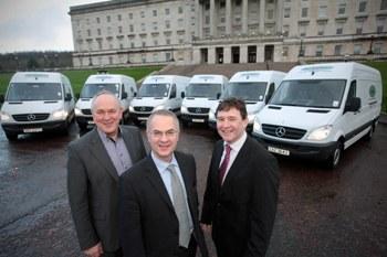The vehicles were delivered at a handover ceremony at the Stormont Estate, attended by Northern Ireland Environment Minister Alex Attwood (pictured centre), who said: “Transport is one of the highest sources of emissions in Northern Ireland and the replacement of older vehicle stock with lower-emission, fuel-efficient vans will help in our efforts to meet greenhouse gas targets.”