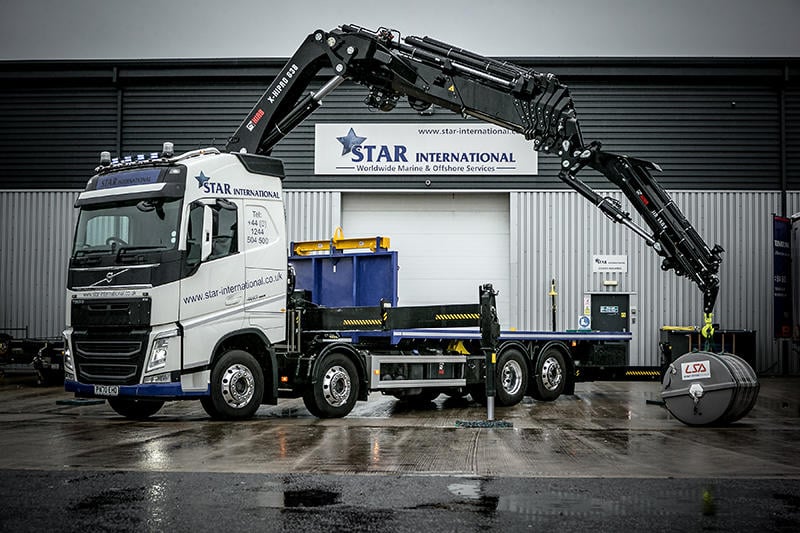 Star International has purchased a Volvo FH with Hiab 638E-7+JIB150-6 crane, allowing the Liverpool-based specialist marine and offshore service supplier to lift directly from the quayside onto vessels.