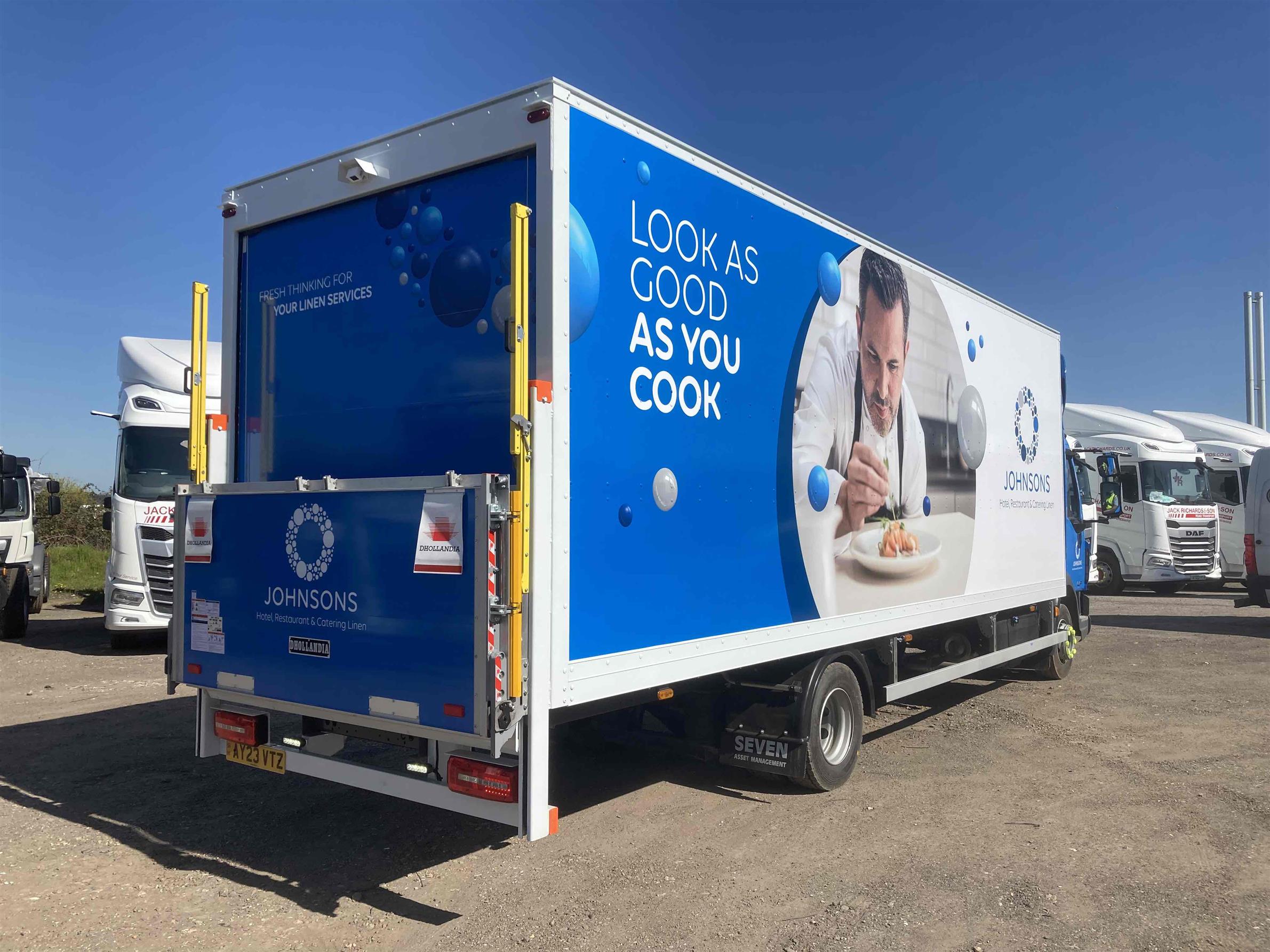 RGVA, the vehicle graphics company, has wrapped 232 vehicles for Johnsons Hotel, Restaurant & Catering Linen since 2017. Its latest project included new liveries for 53 DAF, Mercedes-Benz and Isuzu 7.5-tonne trucks. RGVA applied a 3M ij280 vinyl wrap to the cabs and flat surfaces elsewhere were wrapped with an Arlon 4550gtx.