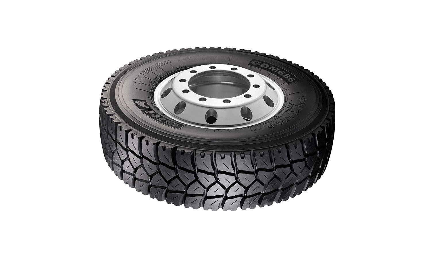 The Giti GDM686 drive axle tyre, which is suitable for on- and off-road use, has been revamped to produce a 20% increase in its potential mileage due to a new tread compound with higher abrasion resistance.